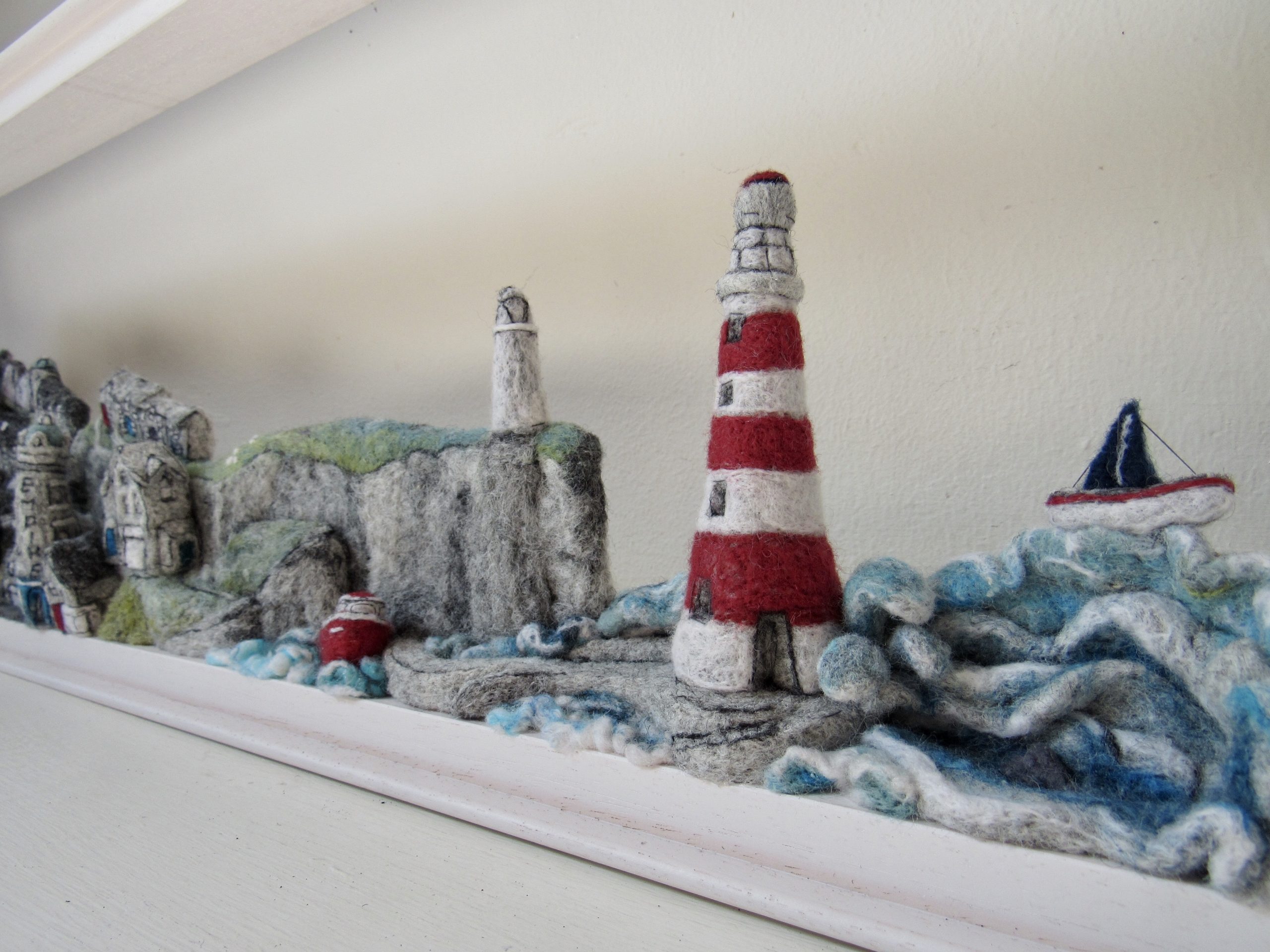 Hannah uses all felting techniques combined to create three dimensional framed pictures and woollen sculptures