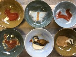Karin is a rustic potter whose work is inspired by nature, texture and colour. She works predominantly in stoneware and produces practical home-ware, tile pictures and small gifts.