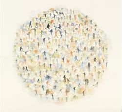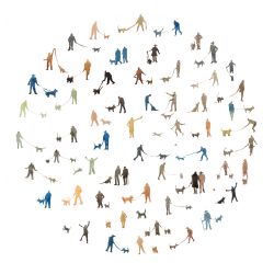 He often uses light humour to engage the viewer, as seen in his recent ‘dog-walker’ paintings which depict his wry observations of the people and dogs he has observed whilst out walking in the Peak District.