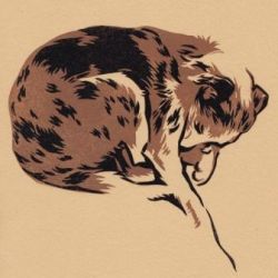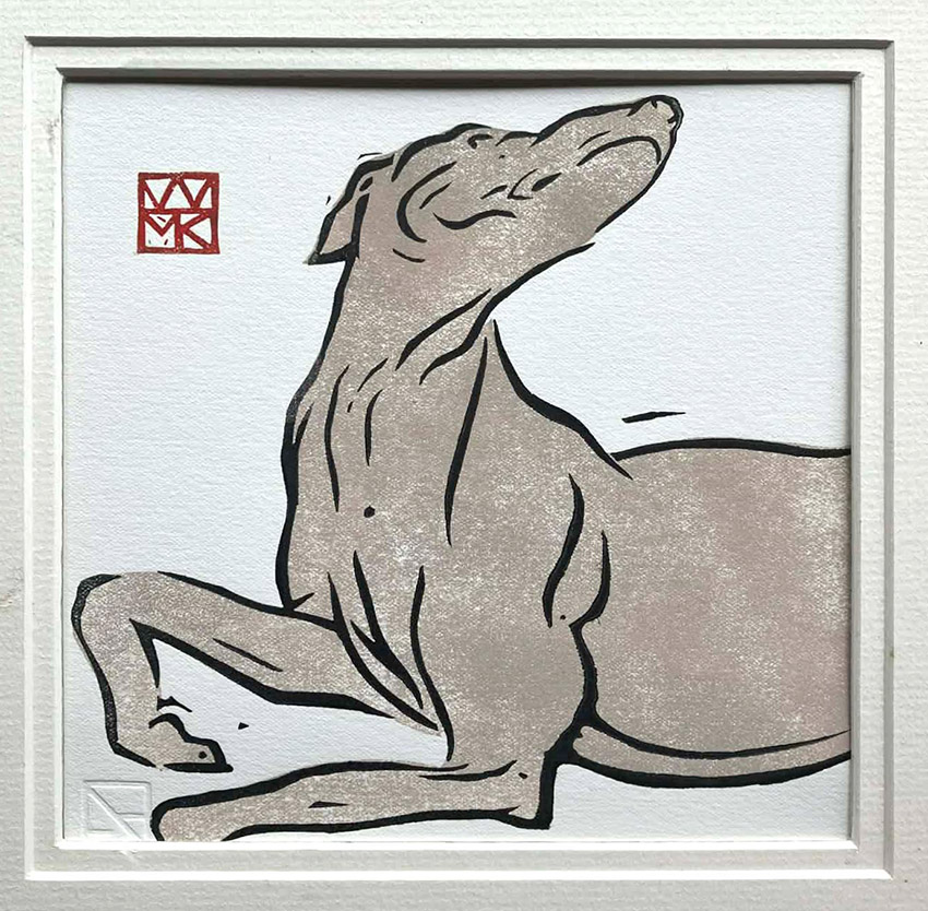 William’s linocuts focus on pets and leisurely domestic scenes. He enjoys drawing from life, capturing brief moments with friends, family and animals and seeks to preserve those moments in his sketchbook.