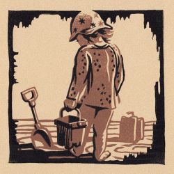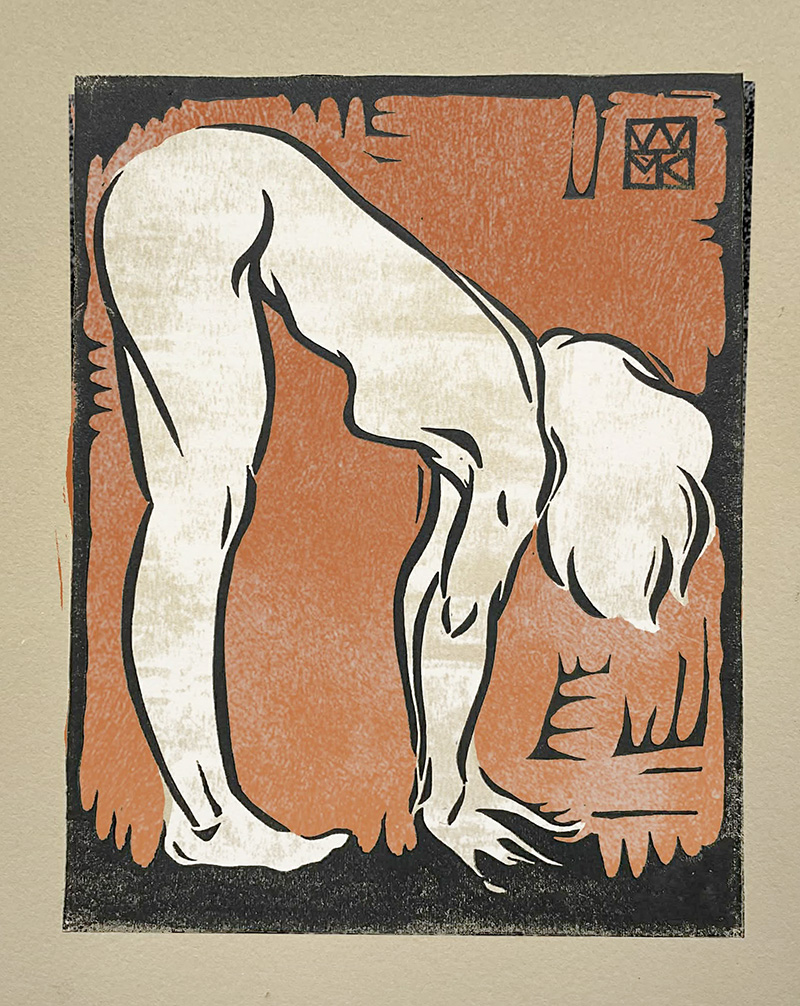 He then develops his studies into linocuts. Lino printing is a relief method and involves carving into linoleum which is then inked and pressed onto paper to create a print.